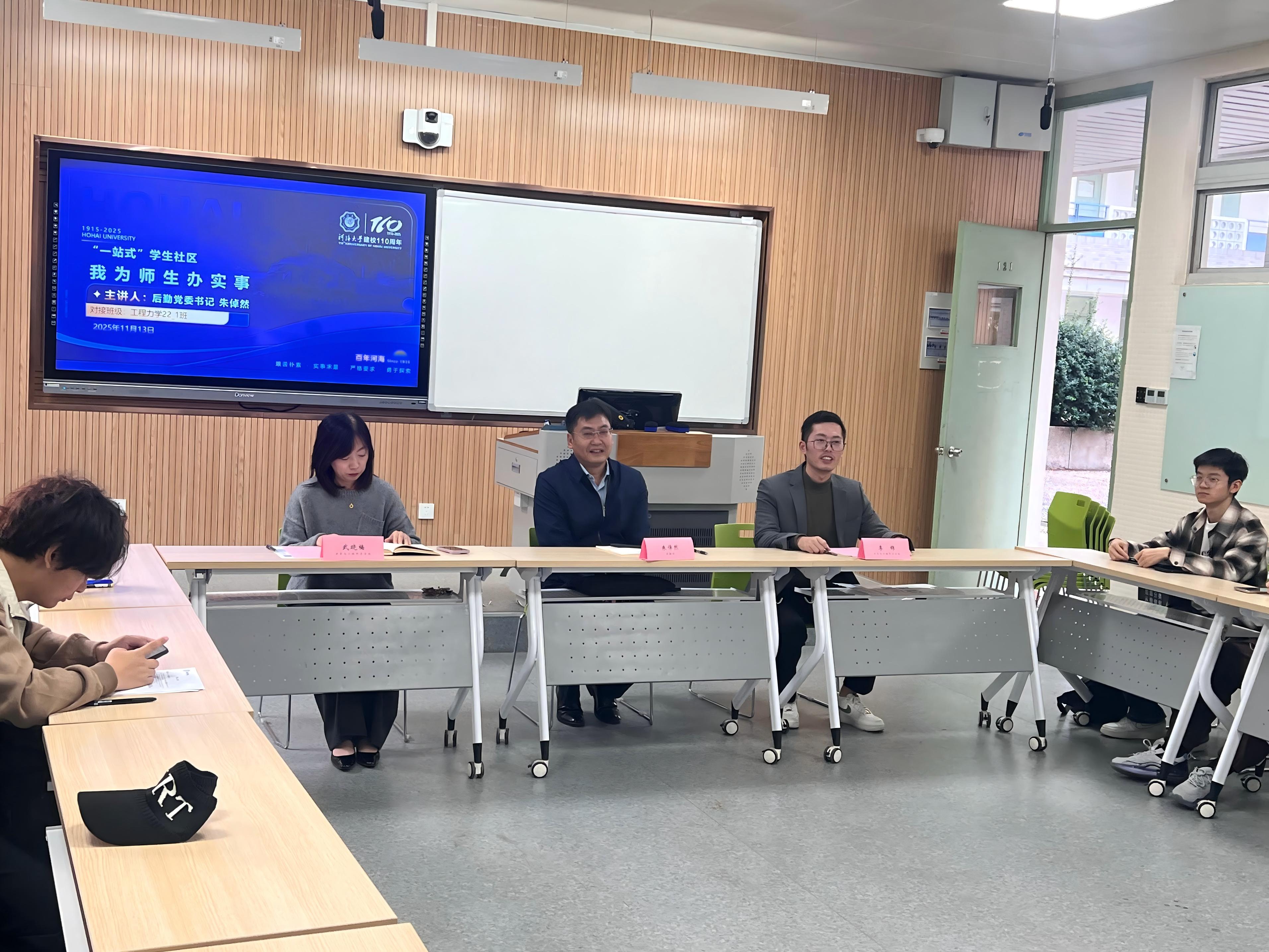 为贯彻落实学校关于深入开展“一站式”学生社区的建设要求,践行一线规则,2025年11月13日下午,“一站式”学生社区——“我为师生办实事”座谈会在致用楼121举行。后勤党委书记朱倬然、力学与工程科学学院党委副书记、副院长武晓楠与工程力学22_1班同学齐聚一堂,共话学业发展、共解生活难题,活动由学院2022级辅导员李锦主持。