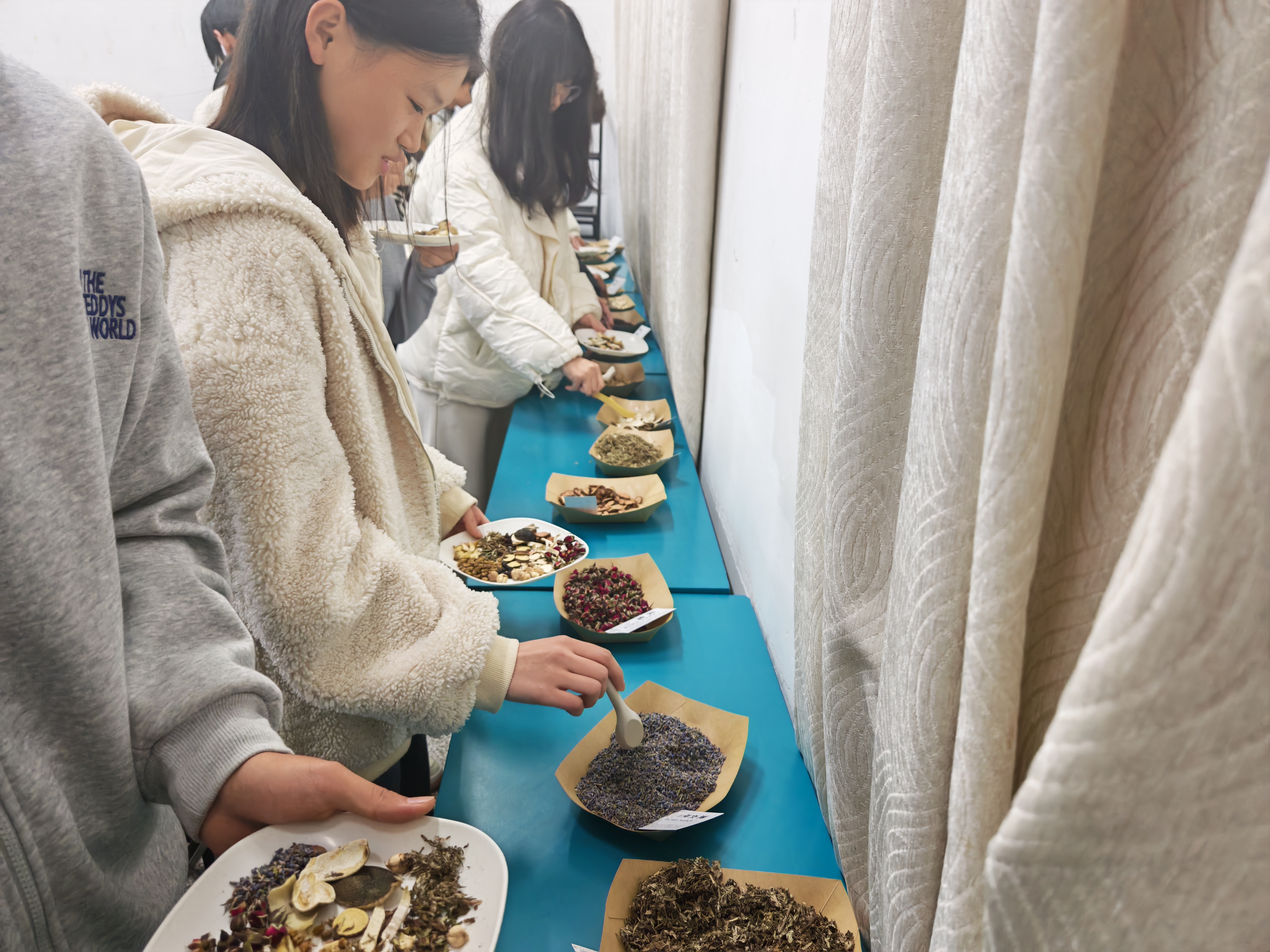 随后,主讲同学为大家讲解了香囊的文化渊源与中药香疗的历史传承,逐一介绍各类药材的功效与特性,逐步揭开中医药文化的神秘面纱,让传统智慧走进现代生活。