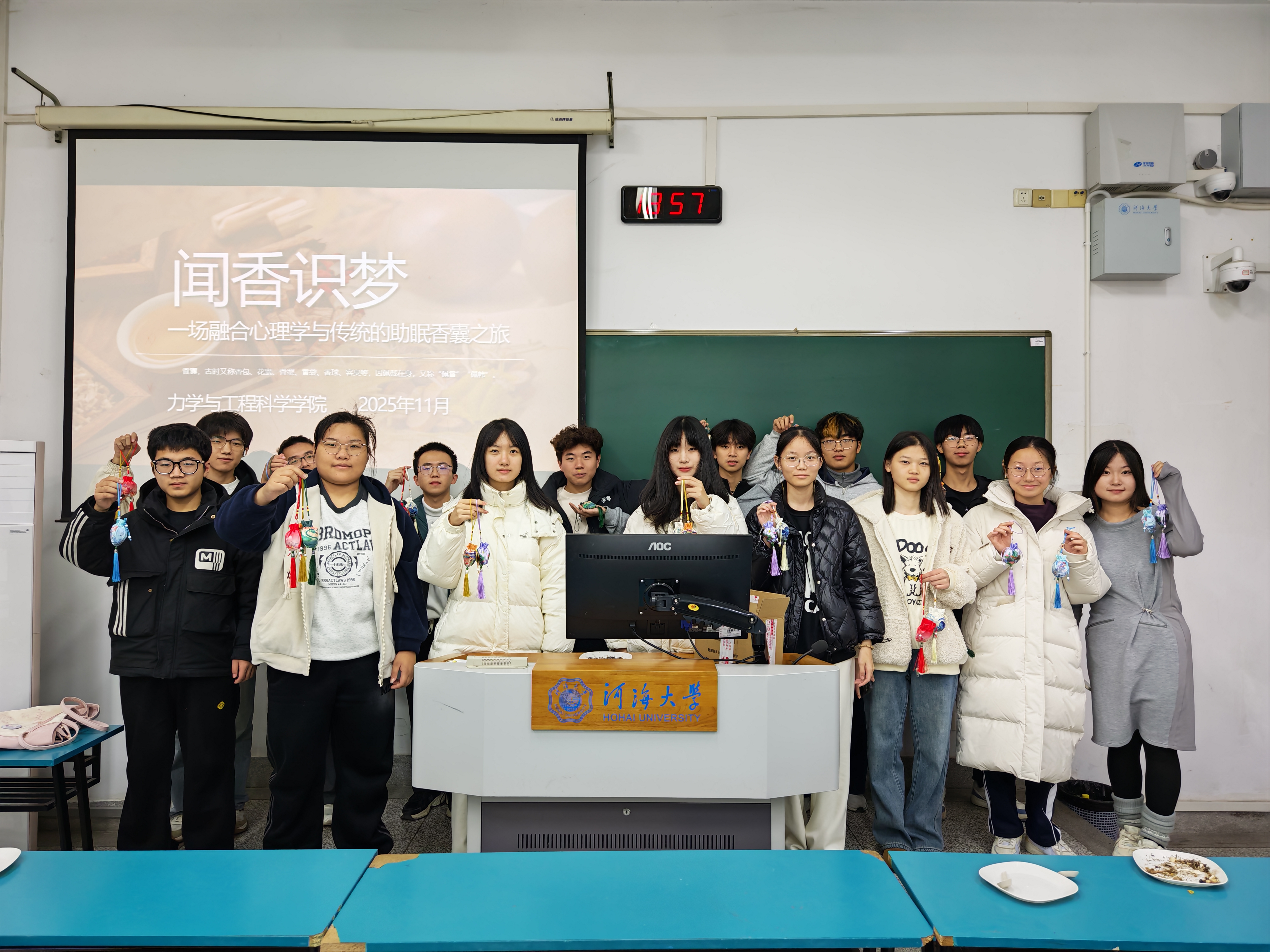 11月28日,河海大学力学与工程科学学院在致高楼A107教室举办“巧手织香囊,本草愈心眠”香囊制作活动。活动围绕睡眠与心理健康主题展开,引导同学们在了解传统文化、亲手制作香囊的过程中,舒缓压力、疗愈心灵。